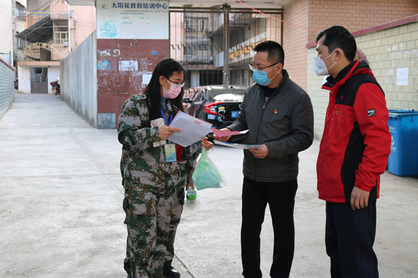 该市纪委监委领导干部到社区检查疫情防控工作落实情况,督促社区干部落实好返乡人员情况摸排和防疫知识宣传工作。